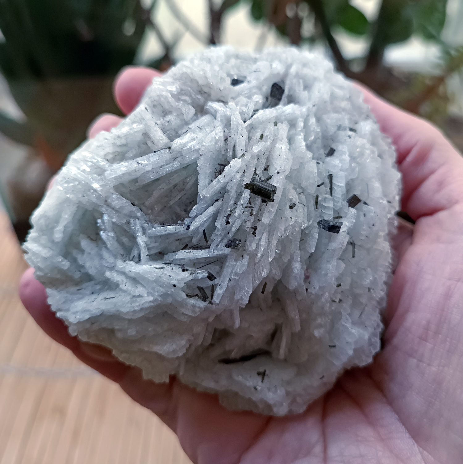 Albita com turmalinas verdes e parte de uma turmalina melancia.