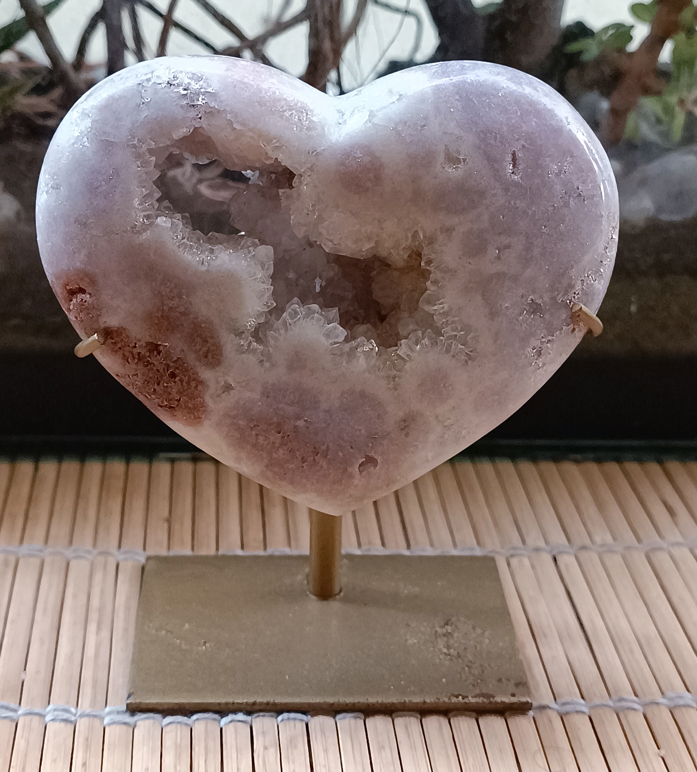 A Ametista Rosa é um cristal que atua no Chakra Cardíaco, tem vibração de amor, proteção, equilíbrio e sabedoria. Purifica o ambiente, e transmuta energias, promove sono tranquilo, indicada para deixar ao lado da cama.