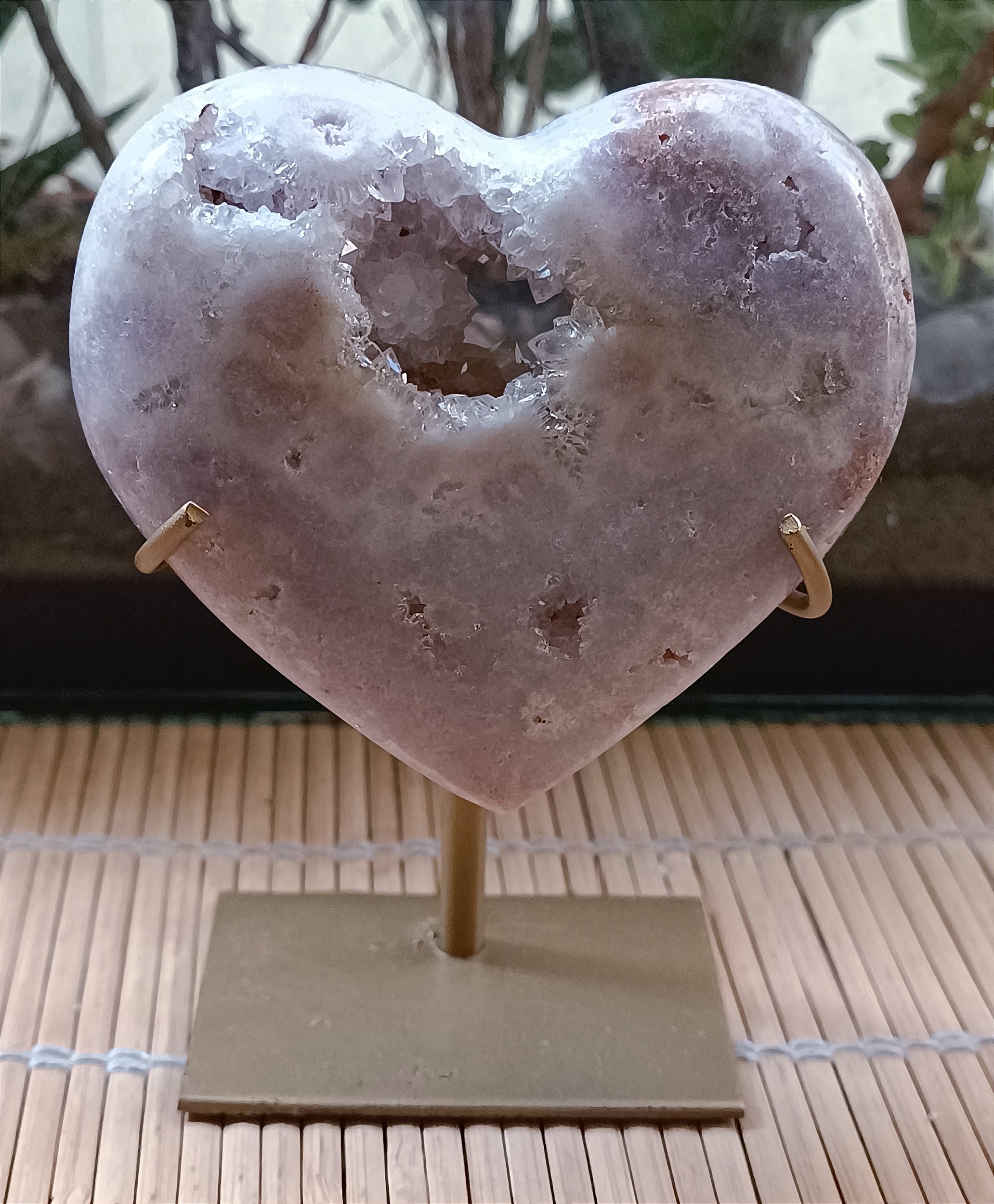 Coração de Ametista Rosa com Geodo