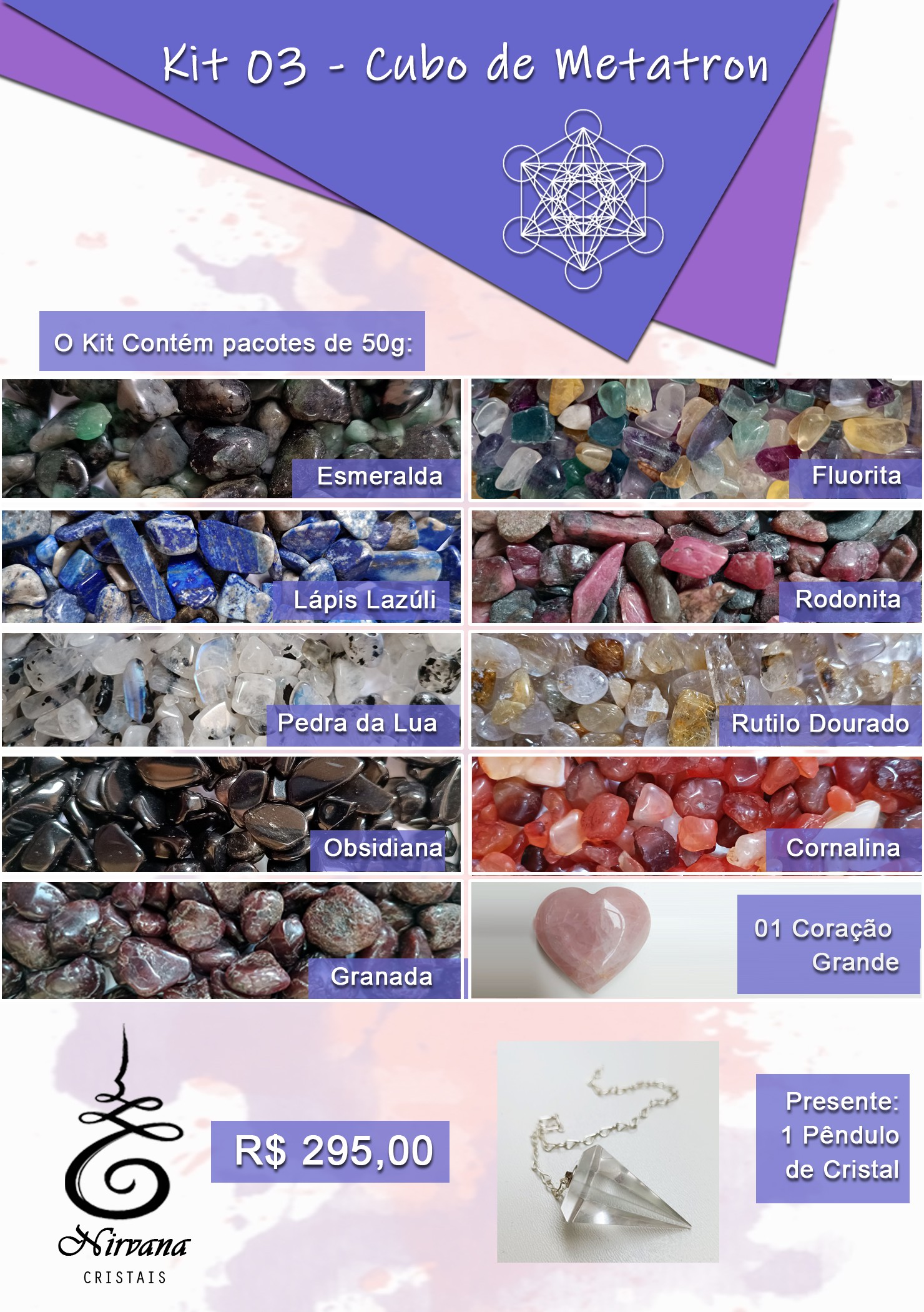 Pensando no significado dessa geometria esse kit contém cristais voltados para o amor, criação, proteção, abundância, e espiritualidade.