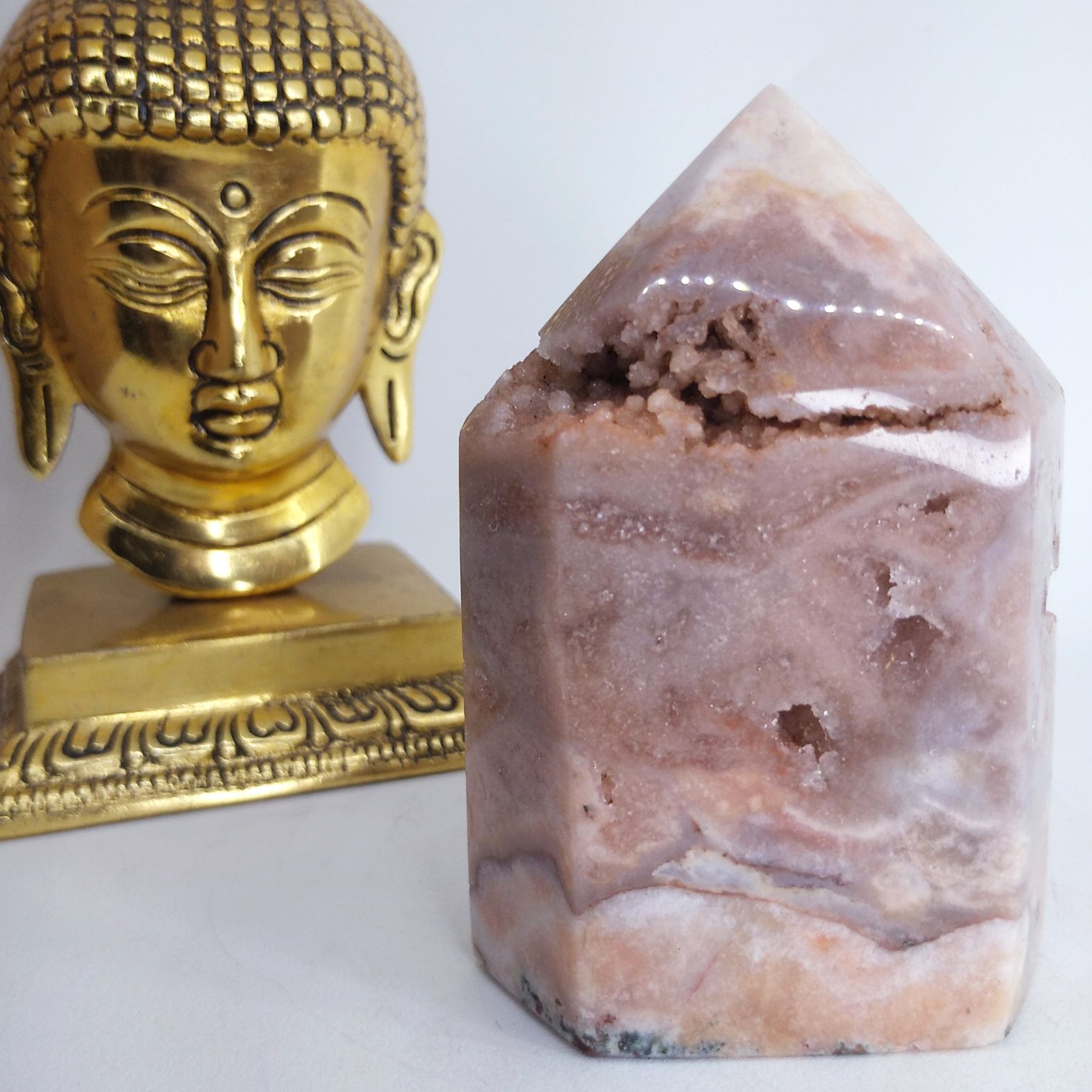 Linda Ponta Ametista Rosa com Drusa