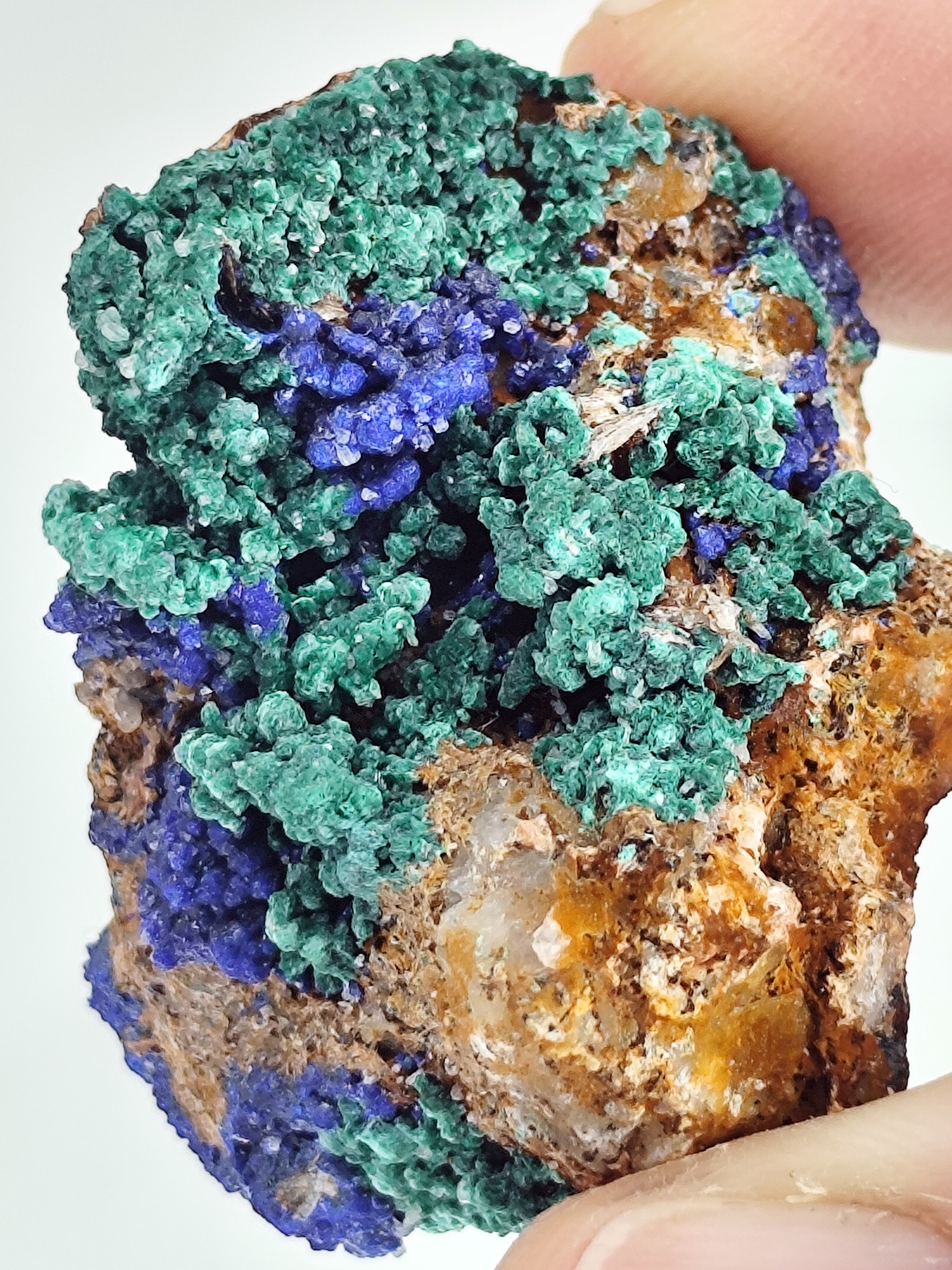 Micro cristais de Azurita com Malaquita sobre matriz