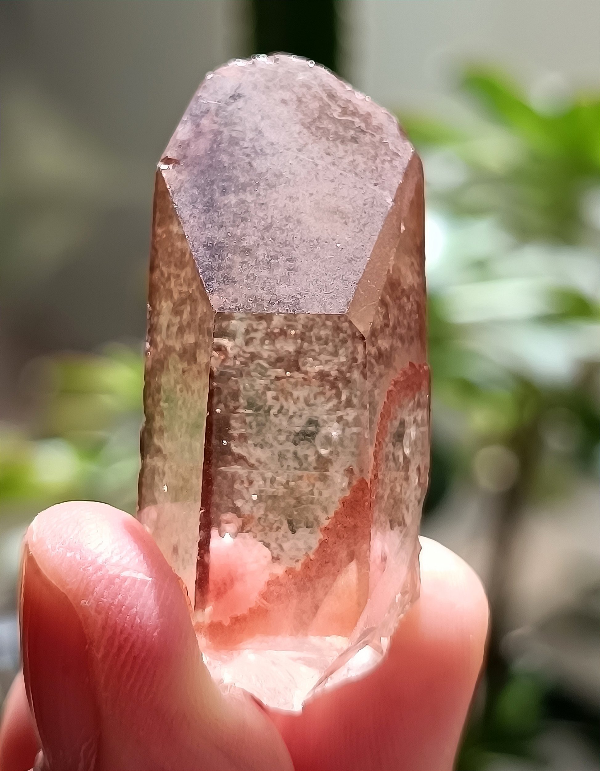 Inclusões de ferro promovem uma gama de cores nos minerais, no caso desta ponta temos um tom avermelhado.